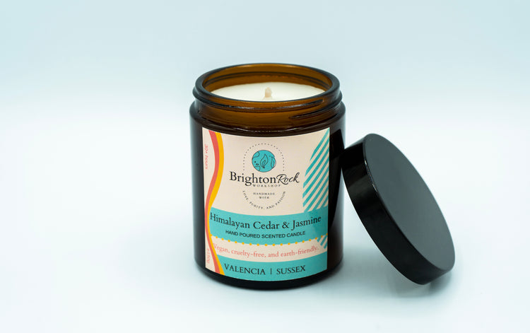 Himalayan Cedar & Jasmine Scented Candle in Amber Glass Jar 150g