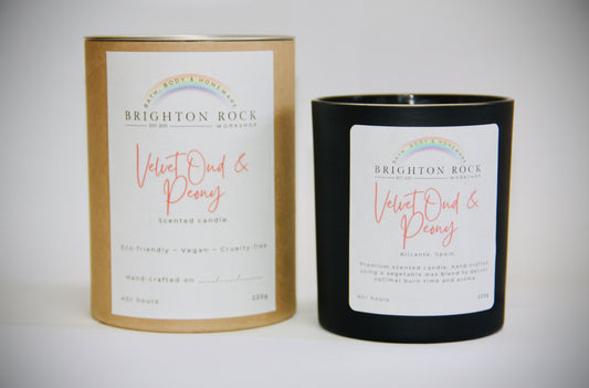 Velvet Oud & Peony Scented Candle in Matte Black 220g